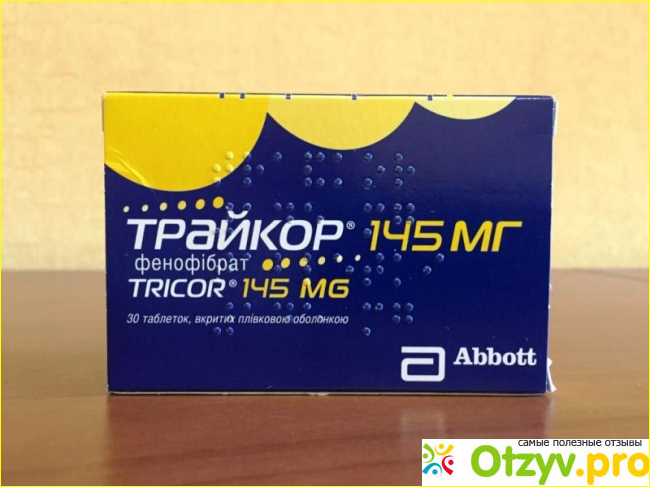 перед нами очередной препарат из категории статинов, ну или по-научному Гиполипидемическое средство – фибрат. В составе содержится активное вещество фенофибрат в дозировке по 145 мг. Кстати, его дозировка указана прямо на самой таблетке и упаковке.