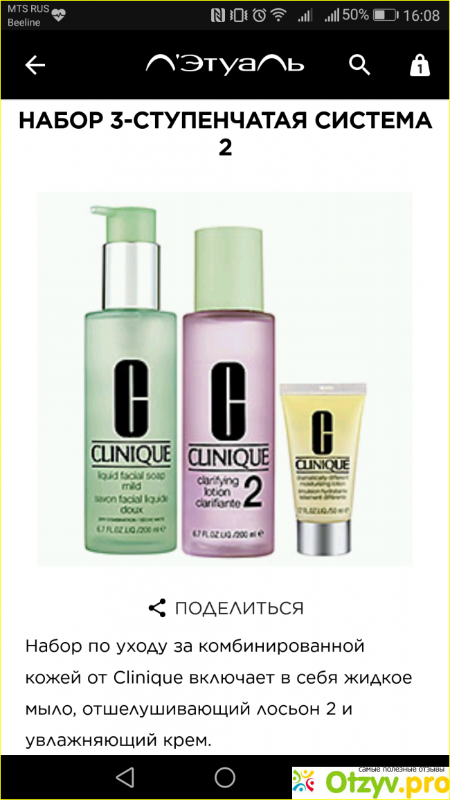Особое удовольствие лосьон доставит людям с жирной кожей. Что касается жидкого мыла, оно абсолютно бесцветное и без запаха, довольно мягкое, видимо дает эффект предварительного очищения. Ну и по поводу увлажняющего крема - немного жирноват, тоже сложно им часто пользоваться (если только пару раз в неделю). Так что система весьма интенсивная - каждое средство отрабатывает свое назначение. По цене этот набор довольно недешевый - около 3000 рублей в полном варианте, но можно также приобрести на пробу мини-комплект (500 - 700 рублей), он показан в видеоролике. В оправдание цены можно сказать, что косметика Clinique славится своей гипоаллегренностью и высоким качеством. Думаю, что будет хорошо смотреться как вариант для подарка или покупка просто себе любимой.
