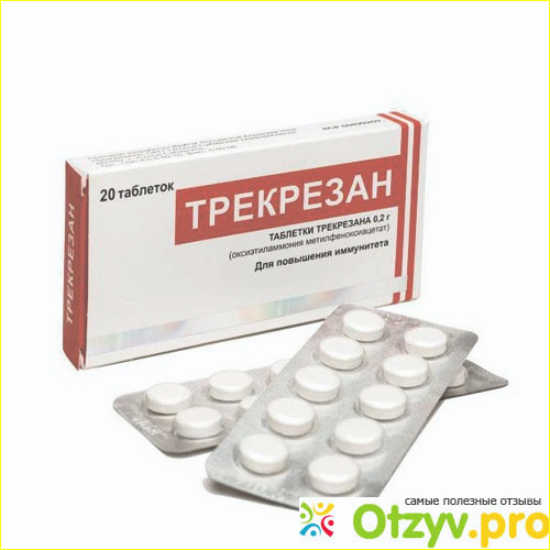 Выпускается он в форме таблеток, а главным его активным действующим компонентом выступает оксиэтиламмония метилфеноксиацетат, а также имеются дополнительные компоненты: сахар молочный, стеарат кальция и картофельный крахмал. Кроме того, что он повышает иммунитет, он ещё имеет адаптогенное и общеукрепляющее действие. Как только таблетка попадает в организм, действие её наблюдают незамедлительное, ведь весь состав начинает быстро всасываться. Благодаря именно ему, происходит выработка интерферонов вида альфа и гамма. После пройденного курса, повышается сопротивляемость и выносливость. Если организм человека заполнен токсинами, то и в этом случает Трекрезан с ними отлично справляется.