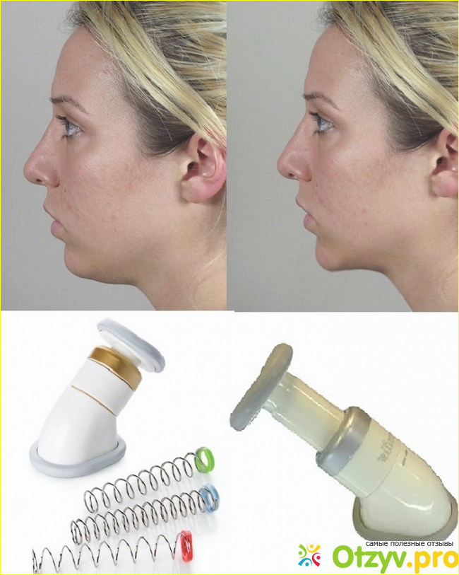 Всего нужно выполнять два упражнения: ставила тренажер под подбородок и наклоняла голову, а потом поднимала, второе кпражнение с открытым ртом (открывать и закрывать рот), так чтобы давить на платформу.