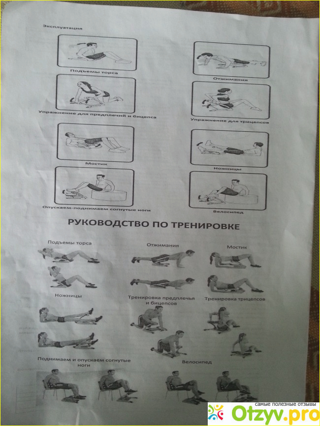 Упражнения можно выполнять и сидя, и лежа на спине, и в положении упор руками, устройство позволяет выполнят их в любом положении.