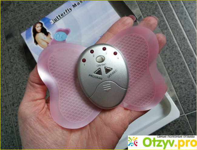 Милая с виду бабочка — устройство легкое, не тяжелое, удобно присоединяется к телу. Различие цветов миостимулятора позволяет выбрать желаемый окрас прибора и использовать его получая помимо пользы еще и визуальное удовольствие.