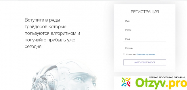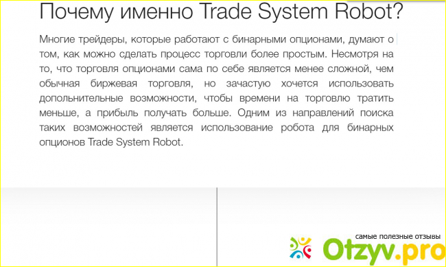 «Все что Вам нужно сделать, это подключить Trade System Robot к Вашему торговому счету, и нажать кнопку START», - написано ниже. А теперь объясню, почему вся афера вызывает подозрение. Сайт состоит из одной страницы…. Только одна, далее идет переаресация после регистрации. Поэтому не буду регаться, к черту.