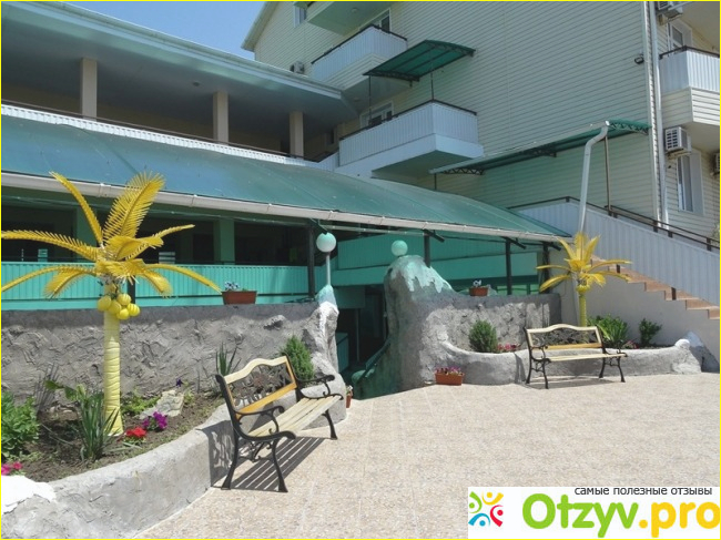 Я долго думала, какой отель нам выбрать, ведь гостевых домов там просто сотни. В результате остановила свой выбор на отеле под названием "Три богатыря".