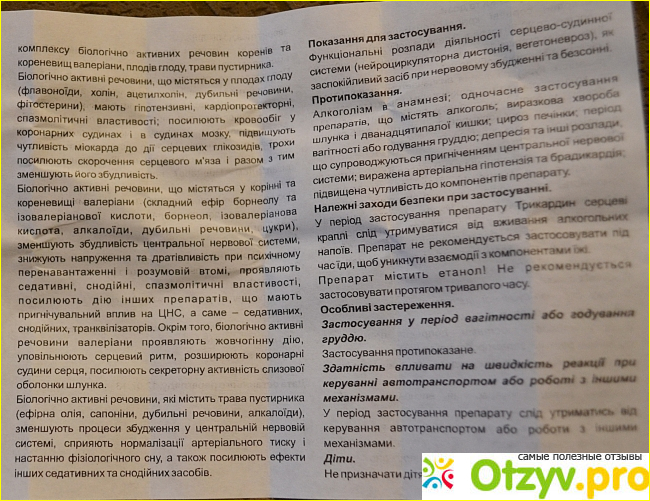 Препарат часто используется при проблемах с сердцем или нервозности. Ингредиенты лекарства практически все являются успокаивающими, которые нередко принимают самостоятельно в виде спиртовых настоек, чая, таблеток. А здесь они собраны вместе и дают больший одновременный эффект. Начну с того, что лекарство успокаивает ритм сердца, а потому выручит при болях в сердце, тахикардии и если перенервничали. Также расслабляет (после замедления сердечного ритма), а потому выручит при повышенном давлении (если резкий скачок у гипотоников, в том числе), при стрессовой ситуации. Помогает успокоиться. Если принимать его перед сном, то засыпать удается быстро и удовлетворенно.