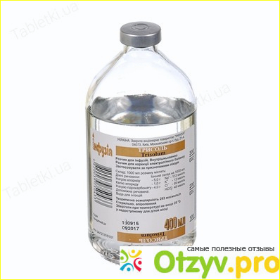 Трисоль является обычным прозрачным раствором, без запаха, для инфузий. Если кто-то не знает, то инфузия-это медленное введение вещества, чаще всего в вену, применяется для восполнения утраченной жидкости в организме.