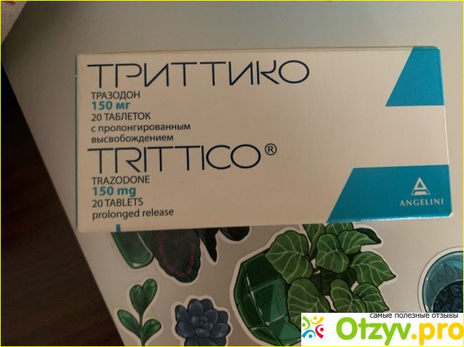 Триттико назначили в качестве основного препарата. Другие таблетки я не принимала. Отпускается только по рецепту. Цена приемлемая, я видела и более дорогие препараты в аптеке. Таблетки интересные — на каждой по две насечки, чтобы ломать было удобнее, когда дозировку отмеряешь. Сначала я принимала по 1/3, потом 2/3 и снова по 1/3.