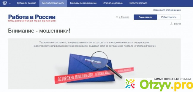 Этот сайт по поиску работы организован довольно строго, да и регистрация проходит только через портал госуслуг. Резюме приходится составлять очень тщательно на множестве страниц, хотя всё довольно элементарно, заполняешь стандартные пункты и всё. А далее ваше резюме проходит модерацию и уже после этого публикуется на сайте. Кстати можно составить сразу несколько резюме, если вы ищете работу в разных направлениях. Вакансии здесь предоставляются как прямыми работодателями так и от центра занятости, так что скорее всего если вы в своём регионе ищете работу, то может проще заглянуть в газету, где печатают эти же самые вакансии от центра занятости. Правда на сайте сталкиваешься с различными неудобствами. Бывает что твой отклик отмечен как не просмотренный, а на почту приходит письмо от работодателя, поэтому не всегда и поймешь кто и на что откликнулся. На сайте частенько бывают какие-то зависания, два раза выкидывало из учетной записи. А когда разместил резюме на этом сайте то посыпались предложения типа работа в орифлейм на подработку в интернете, видать база данных у них никак не защищена и находится в открытом доступе для любого. Хотя возможно я что-то ещё не разобрался в настройках и где-нибудь эту утечку информации можно блокировать. Одним словом сайт неплохой, но вот эти мелкие недоработки снижают общее приятное впечатление от его работы.