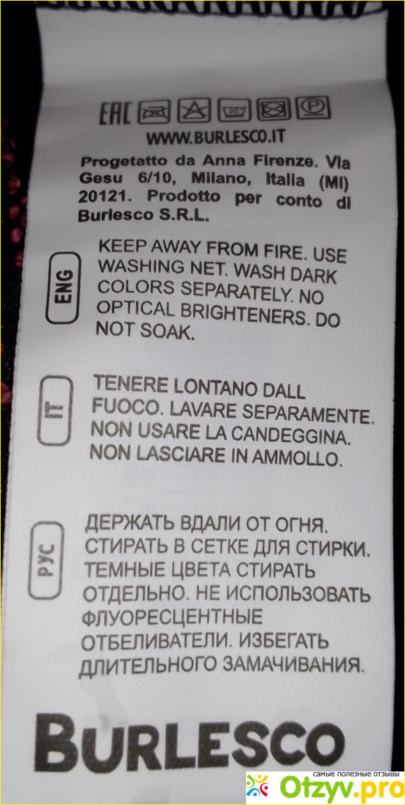 Этикетка пришита внутри, достаточно длинная, плюс в несколько слоев - сразу лучше отрезать. Я так и сделала, так как мне она лично очень мешала во время носки.