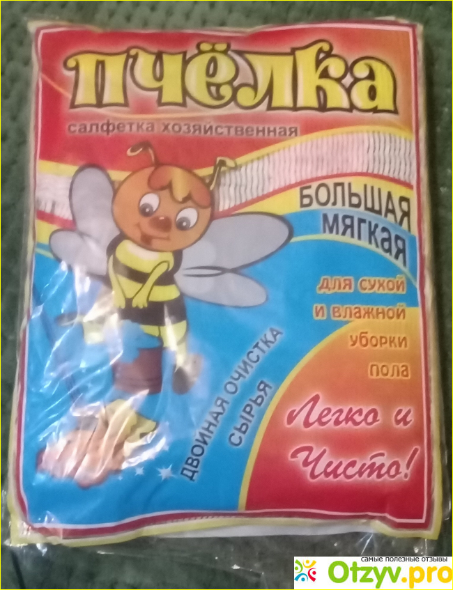Неждавно отправилась за новой тряпкой для пола. Раньше пускала в ход старые вещи, потом все же решила, что правильнее покупать именно тряпки. Салфетка хозяйственная Пчелка стоит в магазине у дома 65 рублей, размер у нее достаточно приличный 75 см на 100.