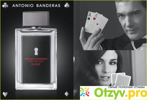 Туалетная вода Антонио Бандерос под другим названием, The Secret Game также отмечается, как недорогая, но в то же время вполне достойная туалетная вода, которую не стыдно приобрести, к примеру, в подарок близкому человеку. Здесь чувствуется аромат зеленого яблока с бергамотом, а также ванилью и кедром. Одним словом, как мне кажется, аромат вполне найдёт себе поклонников. Упаковка из-под туалетной воды довольно интересная, внешне напоминающая карточную игру с небольшой замочной скважиной (включенной, наверно, для интриги).