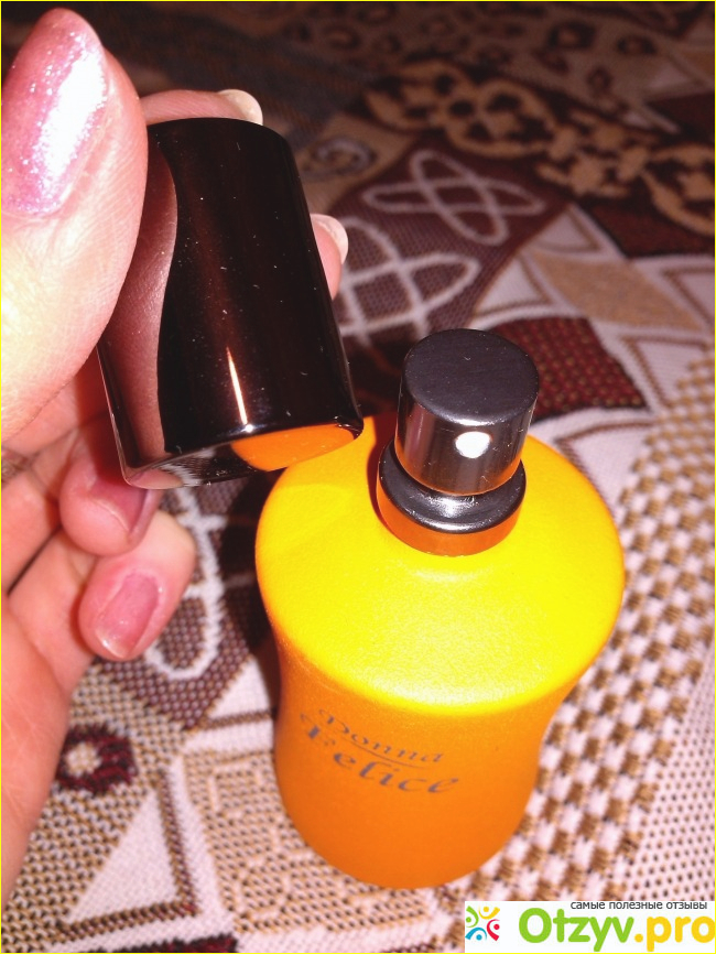 Называется данный парфюм "Донна Феличе", что в переводе с итальянского языка означает "счастливая женщина", а выглядит туалетная водичка следующим образом.