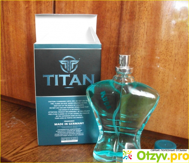 Вот в таком качестве туалетная вода Titan Aqua, по моему, неплохой выбор. И фирма неплохая, Германия. На сайте производителя написано: - "Философия аромата Acqua Di Gio (Armani)". Увы, я не философ. Но и не из тех, кто туалетную воду внутрь употребляет. Золотая середина, скажем так). Произведено, правда в Татарстане, но видимо, по той же рецептуре. Оформление вполне на уровне: дизайн картонной упаковки неплох. Сам флакон оригинален: выполнен в виде могучего мужского торса мифического исполина.