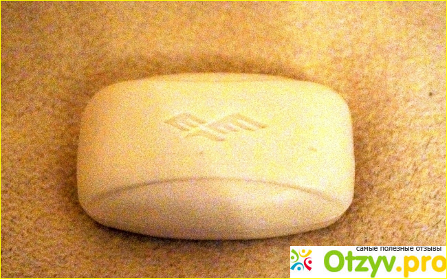 Само мыло представляет собой небольшой брусочек, весом 90 грамм. Это нормальный вес, меня всегда удручало, когда мыло весит совсем малый вес. Оно белого цвета и легко ложимся в ладонь вашей руки. На главной стороне мыла присутствует рисунок, обратная его сторона гладкая.