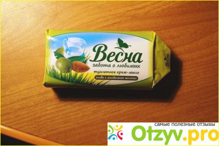 Привлекло оно наше внимание прежде всего своим брендом "Весна" и конечно небольшой ценой, всего 15 рублей. Поризведено оно известной всем парфюмерно-косметической компанией "Весна" в городе Самара. Кусочек ароматного крем-мыла бело-жёлтого цвета весом 90 грамм упакован в глянцево-бумажную упаковку на которой имеются изображения олива и миндального ореха с внушающим хорошее настроение надписью "Весна, забота о любимых". Это мыло хорошо пенится, эффективно очищает ладони рук, в мыльнице не раскисает. По своим свойствам это мыло скорее всего ароматизированное, так как кроме глицирина в его составе нет никаких растительных масел. Видимо по этому данное мыло относится к категории недорогих. Тем не менее мыло хорошо справляется со своими функциями, правда расходуется очень быстро. Это мыло у нас нашло достойное место на кухне, где иной раз приходится помыть руки. В целом из дешевых мыл данное мыло вполне достойное и думаю всегда найдёт своего покупателя.
