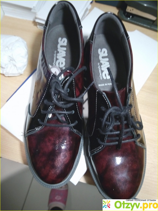 Материал, из которого сделаны ботиночки натуральная кожа, внутри анатомическая стелька, подошва рифлёная со шнуровочкой. Модель идеально подходит с джинсами и юбкой разной длины, я стала носить с брюками классического покроя, смотрится гармонично, затем померила с юбкой, совсем неплохо. На каблуках я не могла подолгу гулять, ноги уставали, но вот теперь, ботиночки стали просто незаменимы как в туристической поездке, так и по супермаркетам, а ходим мы ним довольно продолжительное время, ну уж и, конечно, на работу. Ботиночки выдержали непростой переход в путешествии по пересечённой местность, сырость в осенне-весенний период, непролазную грязь за городом, прогулки с собакой в любую погоду. Теперь в моём гардеробе есть просто незаменимая обувь - ботинки фирмы Suare для повседневного образа и для отдыха.