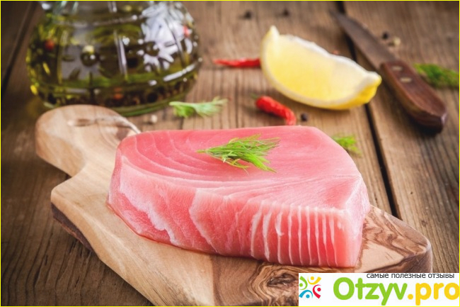 Тунец хорош тем, что имеет ярко-красную мякоть, которая по вкусу чем-то напоминает телятину, и её широко используют в Европе для приготовления рыбных деликатесов.