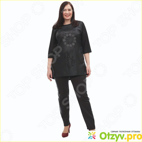 Последнее мое приобретение из этого класса туника Blagof "Женева" черного цета, производитель Россия, сделана очень оригинально: спереди экокожа с перфорацией на подкладке из вискозного полотна, имеет два кармана, сзади материал трикотаж, состоящий из пяти процентов эластана, шестидесяти двух процентов полиэстера, и тридцати трех процентов вискозы, рукавчик трехчетвертной.