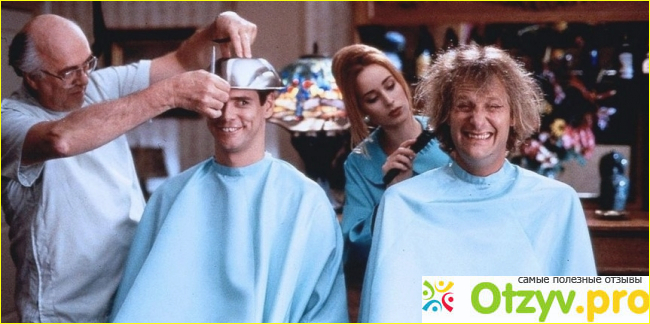 Ну в остальном юмор тупой. Дурацкая шутка про то, как они напоили мочой полицейского, я смотрел на это и думал, что в этом смешного? Сделали бы этот гэг в русской комедии, чтобы какой-нибудь Юнусов давал бутылку с мочой гаишнику, это назвали бы пошлостью, а вот из рук Джима Керри это смешно! Или что смешного как эти двое сидят в джакузи и Ллойд говорит: «Я бы отжарил тебя, если бы у тебя были сиськи», блин, ну что за гейские намёки. И так далее, юмор здесь ну очень тупой и пошлый и не надо оправдывать это тем, что главные герои тупицы, юмор всё равно идиотский, например как они соус глотали.