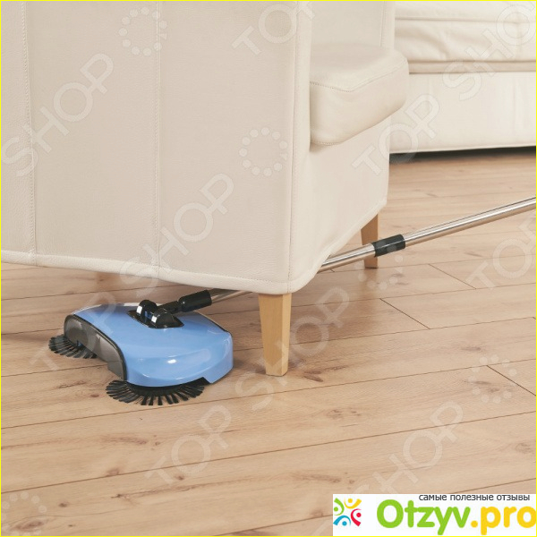 Обычно турбовеник состоит собственно из вращающегося механизма, пылесборника, совка, а также телескопической трубки с ручкой. Пользоваться им действительно очень удобно. И особенно хорош он при уборке гладких поверхностей и вам не надо возится с вениками, от которых постоянно больше только срача и пыли. Вам не нужно будет дополнительно использовать совок. При этом вы не нуждаетесь в электричестве и батарейках. Механизм основан за счет вращения собственно самих щеток. И вам не надо будет передвигаться со шнуром по всей комнате.