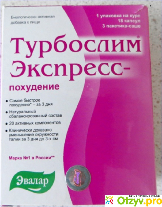 Да, да, не пугайтесь, в день нужно было принимать сразу аж шесть капсул, причем по две за раз. При этом утром производитель реокмендова употреблять 2 белые капсулы, днем – две розовые, а вечером – две синие. Плюс ко всему в день нужно было выпивать пакетик – саше эваларовского напитка для похудения. Я все делала в эти три дня по назначению, что в инструкции. Я реально похудела на три килограмма. При этом я не сидела на унитазе круглосуточно, как от аналогичных препаратов, не чувствовала никакой тошноты и неприятного послевкусия и горечи во рту, все было как бы чудесно. Так что принимать эвалар Турбослим в принципе приятно, но вот что может быть потом? Вот это вопрос серьезный, потому что у здорового организма может возникнуть масса проблем со здоровьем, а у больного – вообще ужас. Так что перед приемом турбослим не только проконсультироваться нужно у специалиста, нужно быть предельно внимательным и понять, насколько нужен тебе этот метод похудения, может все таки что-то другое, не химию. Хотя, производитель в инструкции обещает чуть ли не самый натуральный состав, смотрите сами далее.