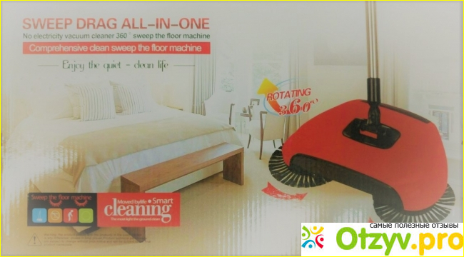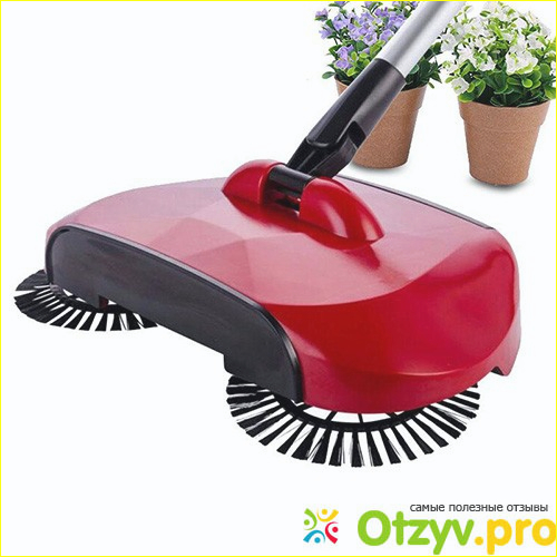 Турбо веник довольно компактный, механический. Отсутствие каких либо проводов. Имеет три вращающиеся щётки. Две круглые по бокам и длинную в центре. Аккумулятор отсутствует. При уборке требуется лишь водить его по полу. Длинная ручка позволяет человеку не сгибаться при наведении порядка. Веник очень манёвренный, достаёт до любого трудно доступного уголка. Не сложно подметать под шкафами и плинтусами. Легко скользит по проводам. Честно заявлено в характеристике, что справляется только с твердыми поверхностями. Такими как плитка и ламинат. В комплекте идет специальный инструмент для чистки щетины. Огромным плюсом является то, что во время уборки не подымается пыль, так как весь мусор собирается в отсеке веника. Ещё очень приятно, что можно забыть о совке. Такие турбо помощники явно не помешают уборщикам офисов и гипермаркетов.