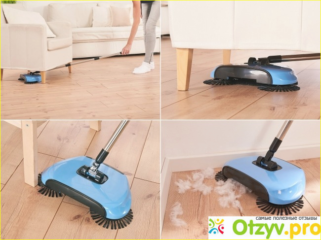 6. Удобный пылесборник. Если делать уборку используя обычный веник и совок, то достаточно трудно собрать абсолютно весь мусор с пола. Конструкция веника захватывает каждую частичку, и они сразу же попадают в пылесборник. А поверхность пола остается идеально чистой.