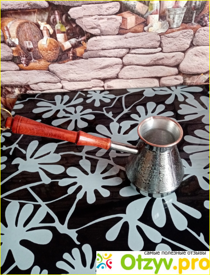 Деревянная ручка поднята достаточно высоко. Она никогда не подгорает и не нагревается. Готовый напиток можно переливать без проблем, для прикосновения к деревянной ручке не требуется рукавичка.