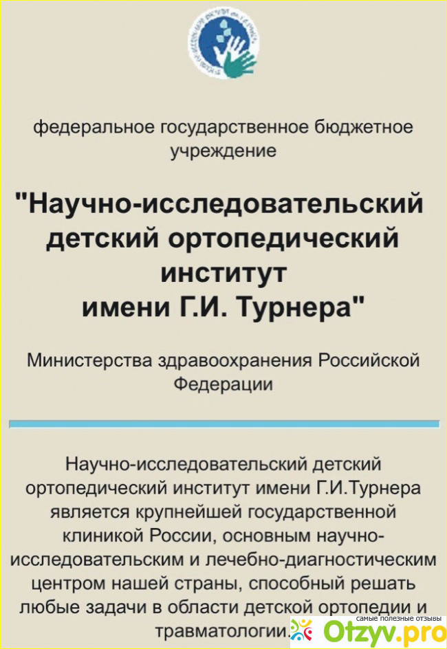 Федеральное государственное бюджетное учреждение "Научно-исследовательский детский ортопедический институт имени Г. И. Турнера" Министерства здравоохранения Российской Федерации.