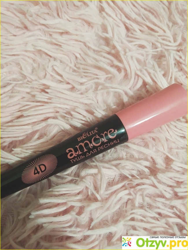 Мне не так давно попался один экземпляр, от которого я в восторге. Это тушь Аmore от Белорусской фирмы Белита. Покупала тушь за 330 рублей. Её два вида, я расскажу именно которая с розовым колпачком. Так она выглядит.