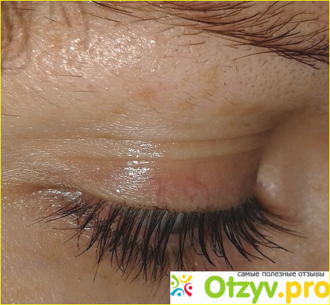 Видно, что реснички хорошо прокрашены по всей длине. Тушь хоть и не удлиняющая, но хорошо прокрашенные кончики ресниц создают эффект увеличения их длины. Еще можно убедиться, что эта тушь не слеивает реснички между собой.