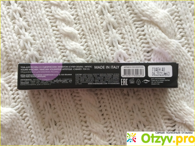 На коробочке присутствует необходимая информация о составе, который на мой взгляд не отличается ничем от других подобных тушей для ресниц, также можно найти информацию о производителе, которая вполне может пригодиться покупателю и конечно расписан ожидаемый эффект от использования данной туши.