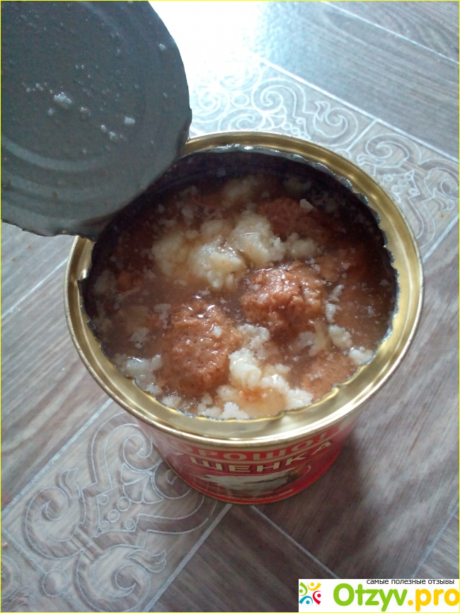 Первое, что настораживает, внешний вид. Будто не еда для человека. Я вылила в тарелку содержимое банки, внешне выглядело не съедобно и отнюдь не привлекательно. Я в отзыве прикладываю фотоматериалы, обратите внимание.