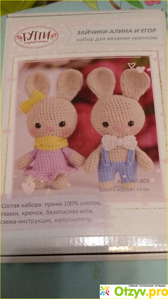 Поэтому приобретаю наборы для вязания, в которых все продумано за нас, и остается только разобраться с инструкцией и начать вязать. Так я сделала несколько игрушек, которые раздарила. Но, маленькие амигуруми не давали мне покоя и взяла набор для мини зверюшек от фирмы Тутти. Под названием "Зайчики Алина и Егор".