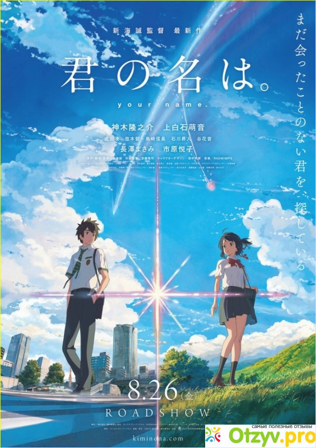 В фильме "Твое имя" все идеально, смотреть картину одно удовольствие, получаешь истинне наслаждение, поэтому я говорю авторам картины режиссеру и сценарристу Макото Синкай и сцеаристу Кларк Чэн искреннее спасибо.