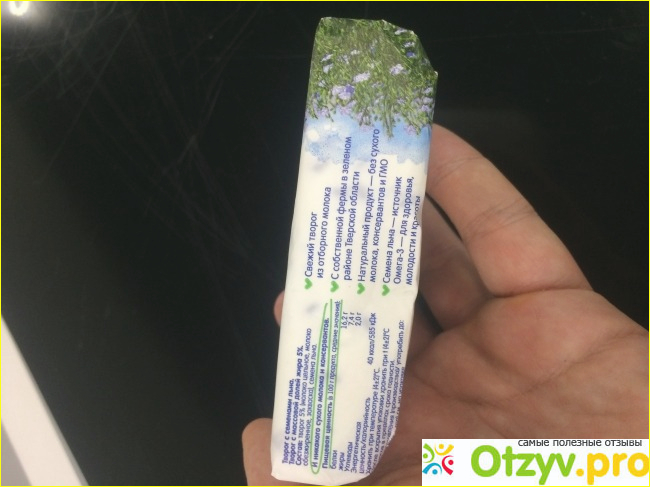 Говорят семена льна очень полезны для здоровья? Ну я и попробовала! Понравилось, семена совсем не портят вкус, а только его дополняют, а если они еще и полезны, то почему бы и не взять с семена льна? Я ведь все равно (как и мой муж) ем творог каждое утро. В общем, взяли мы там сразу несколько пачек этого творога, потом всю неделю им питались. Пока никаких положительных эффектов на своем организме я не заметила, но и негативного тоже нет? Да и будут ли они, поев эти семена льна всего пару раз. В общем, кто увидит этот продукт, то пусть не пугаются, потому что вкус не портит, в целом это все очень вкусно, сам творог у этой марки оказался очень качественным, как нам рассказывали делается из натурального молока, которое производится на собственных фермах - ну мы поверили, проверять не стали)) не в тверь же тащится. Вот прилагаю пару фото, не пугайтесь, что рука мужская, это муж фоткал)