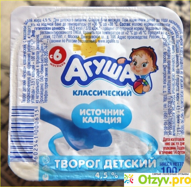 Творог Агуша необходимо хранить при температуре от +2'C до +6"C и относительной влажности не более 75%. Годен в течение 19 суток.