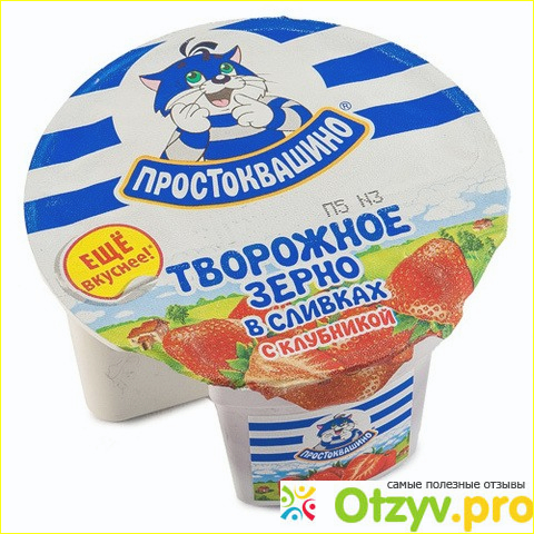 При смешивании получается очень вкусный готовый продукт – идеальный перекус на работе или легкий диетический ужин. В отличие от белорусского зерненого творога, творожок «Простаквашино» гораздо легче найти в российских магазинах, а по вкусу он практически не уступает ему. Рекомендую попробовать вам самим и сравнить. ))
