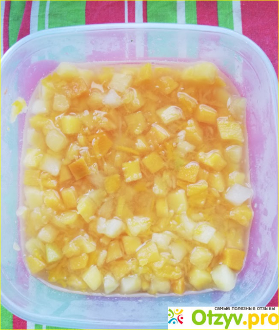 Кубики через прозрачный полиэтилен виднелись хорошо, они рассыпались, не были слипшимися, как бывает у плохой заморозки. Единственное, что насторожило, так это неестественный цвет. Мамина тыква была оранжевой. Подумав, что другой вид, купила.