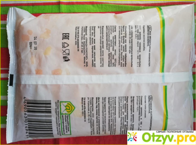 Дальше пришлось брать покупную, в свежем виде не было, остановилась на замороженном продукте. В магазине предлагались разные марки, взяла «Каждый день», в которой было видно, что приобретаешь.