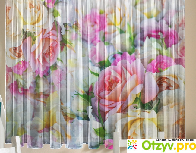 Так, тюль представляет собой полотно белого цвета с нанесенным на него рисунком посредством фотопечати.