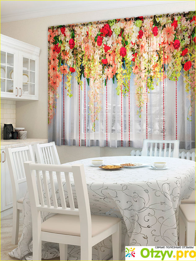 Тюль, который мне попался н просторах интернет-магазина просто ошеломил меня — словно венок из цветов, венчающий самую верхушку изделия.
