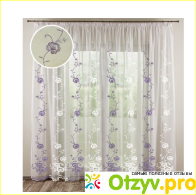 И еще маленький секрет — фиолетовые тона вышивки позволяют изделию смотреться еще еще, чем оно есть на самом деле. Так что если вы вовремя не постираете тюль Райские цветы — никто и не заметит, что изделие загрязнилось.