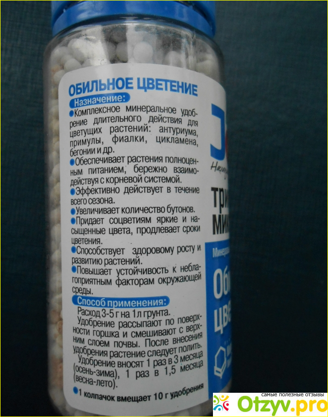 В состав этого удобрения входят три жизненно необходимых для домашней цветущей флоры минерала - азот, фосфор и калий. Главное - соблюдать дозировки, которые указаны на этикетке.