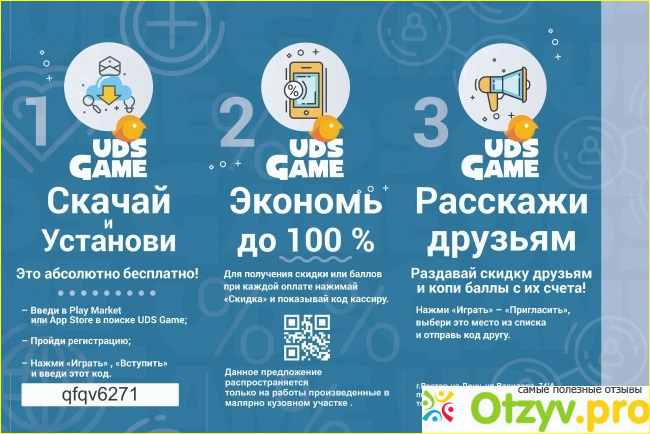 начислили бонусные баллы, решила оплатить в магазине не приняли код. Начисляются бонусные баллы по номеру телефона, а списать их нельзя по номеру. Коды постоянно меняются.UDS GAME это как пирамида, никаких цифр, гарантий. Вначале мне описали идею самого приложения, его функциональность, что вызвало у меня огромное восхищение, так же схема вознаграждений различные уровни и так далее. Но показалось что слишком всё чётко и активно вся информация преподносилась, сразу начали возникать сомнения, поняла что это сетевой маркетинг. Всё почитала, проглядела про данный сайт, начала ознакамливаться с данным сайтом более глобально. По итогу оказалось, они продвигают его на бизнес, вместо того чтобы с начало привлечь побольше пользователей. Они предлагают внедрять данное приложение и чтобы сами доносили информацию о нём своим клиентам. Для привлечения работают партнёры, которые зарегистрировали уже топовые пользователи и им капают хорошие проценты. Делается всё так приходит какой-нибудь партнер в заведение, и предлагает подключить данное приложение примерно где-то за шесть тысяч рублей, в месяц. Всё подробно описывает уникальность и функциональность данного приложения, систему, бонусные карты и так далее. Но по итогу целевой аудитории нет вообще, поэтому придётся владельцу бизнесу так же предлагать другим посетителям устанавливать данное приложение ради бонусов, да плюс каждый месяц вы будите платить. То-есть по итогу вы можете не смочь оправдать заплаченные деньги.