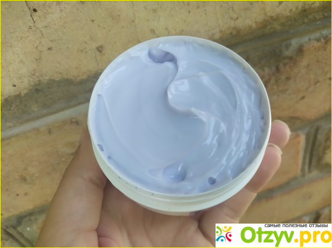 Крем находится в довольно увесистой баночке объемом 150 мл. Такого количества крема хватает на несколько месяцев при регулярном применении. Крем сиреневого цвета, довольно густой по консистенции, жирный, но распределяется по коже стоп легко.