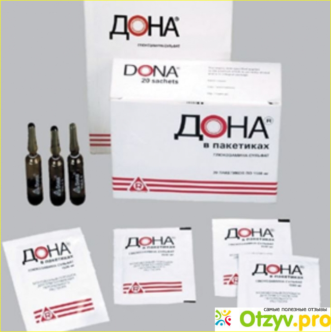 Дона является отличным средством, которое позволяет снимать воспаление и помогает обезболивать, способствует восполнению эндрогенного дефицита глюкозамина, помогает стимулировать производство кислоты гиалуроновой и протеогликанов; способствует увеличению проницаемости суставных капсул, позволяет восстанавливать процессы ферментации в клеточках мембран синовиальных и хрящей суставных. Помогает улучшать фиксацию серы в процессах синтеза кислот хондроитинсерных, помогает облегчать правильное усвоение кальция в тканях костных, обеспечивает торможение развития процессов дегенерации, которые могут образовываться в суставах, помогает восстановить их функции, при этом уменьшая неприятные болезненные ощущения в суставах.