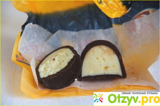 Считаю плюсом правдивую информацию от производителя, потому что вкус шоколадной глазури выдаёт не настоящий шоколад. Конечно, не "пластилиновая" масса, которая попадается в некоторых конфетах, но всё же. В общем, впечатление от Укуса женщины, не плохое, но и не восторг. Конфетки одинаковы по форме, с продольными бороздками. Поставить на праздничный стол можно, но цена мне кажется завышена.