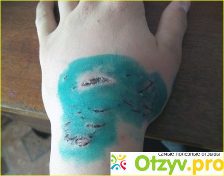 После этого саму кожу вокруг раны нужно обработать зелёнкой, йодом или спиртом, но только не саму рану.
