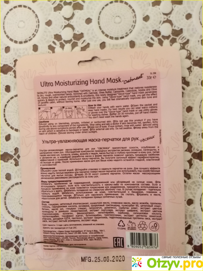 Моя кожа рук очень сухая, раздражительная, и если при контакте с водой, например, при мытье посуды, не надеть защитные перчатки, она сразу приобретает плачевный вид и может покрыться цыпками. Я купила данную маску для экстренной помощи коже рук.